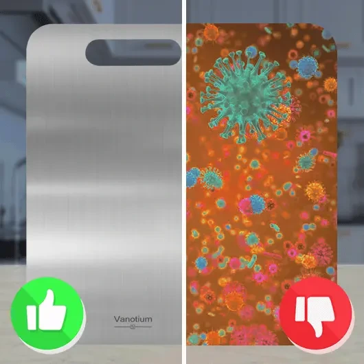 Unlike bamboo and wooden boards that quickly absorb smells, the Vanotium board has a non-porous surface. This means: